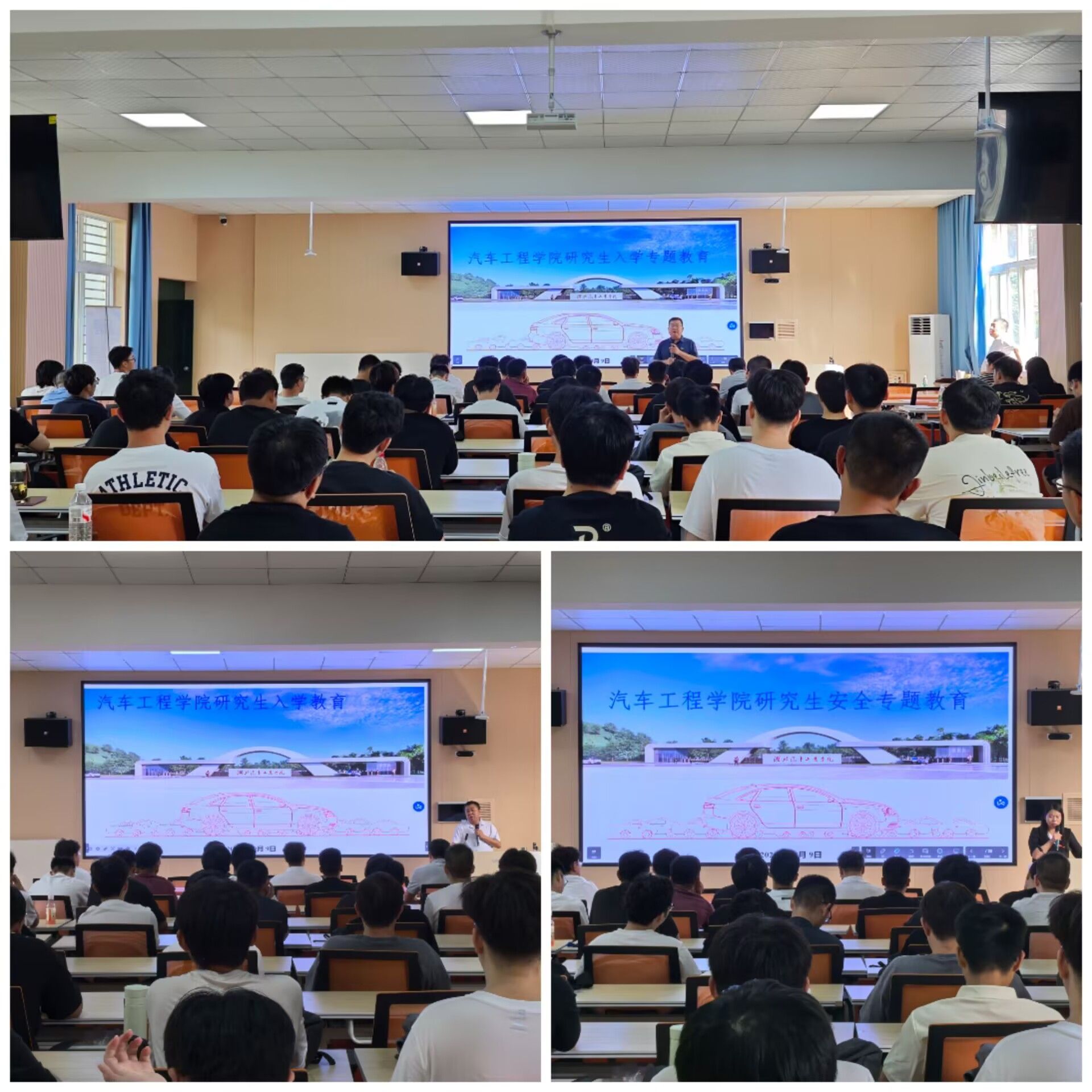 的师资力量、科研平台与产学研资源,鼓励新生珍惜时光、潜心钻研、恪守学术规范,为未来学术与职业发展打下坚实基础。周彬副书记则聚焦安全教育,通过典型案例讲解了实验室、消防、网络及交通等多方面安全知识,强调提升防范意识、共建平安校园的重要性。杨亚会书记从理想信念、品德修养与时代使命出发,勉励新生将个人成长融入国家汽车工业发展与科技自强的大局,勇于探索、担当重任。