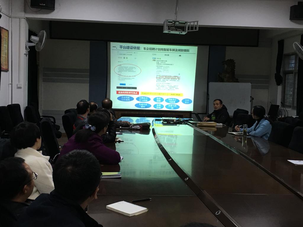 召开了“汽车动力学仿真控制与自动驾驶研究平台建设方案”的研讨会,杨正才博士做了专题报告。新能源汽车关键技术研究所、汽车传动与控制新技术研究所的老师和部分研究生参加了本次研讨。