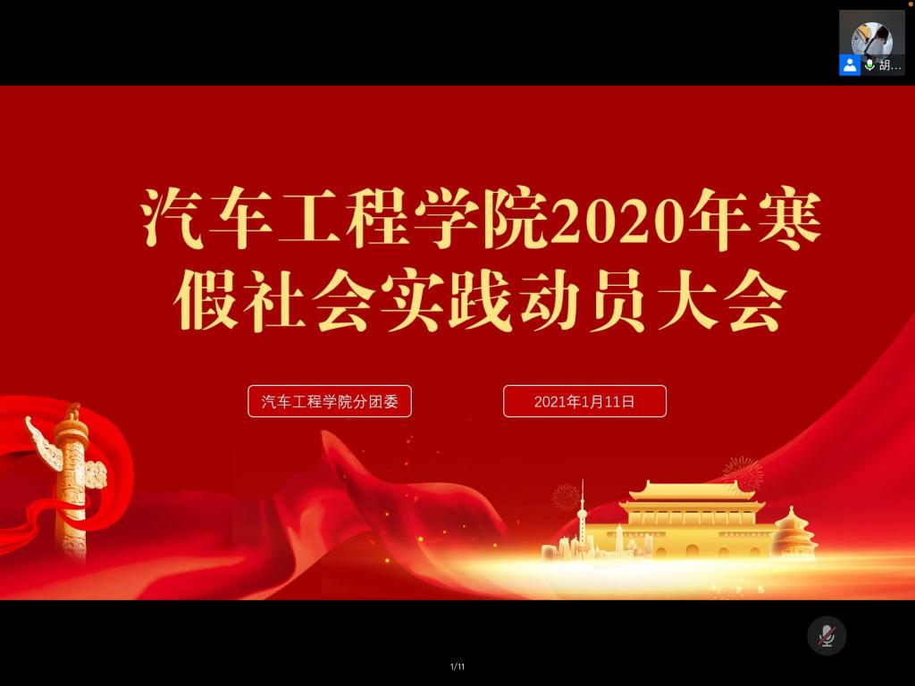 优良的社会实践工作经验,帮助20级大一学生了解寒假社会实践的重要意义和基本要求,树立起深入基层实践的意识,本着“就近就便、因地制宜”的原则,在引导、组织学生积极配合当地疫情防控工作,保障自身生命安全和身体健康的前提下,1月11日下午,我院于腾讯会议开展了2020年寒假社会实践动员大会。分团委书记胡霄寒、18级寒假社会实践优秀个人胡宇迪以及20级全体学生参加了此次活动。