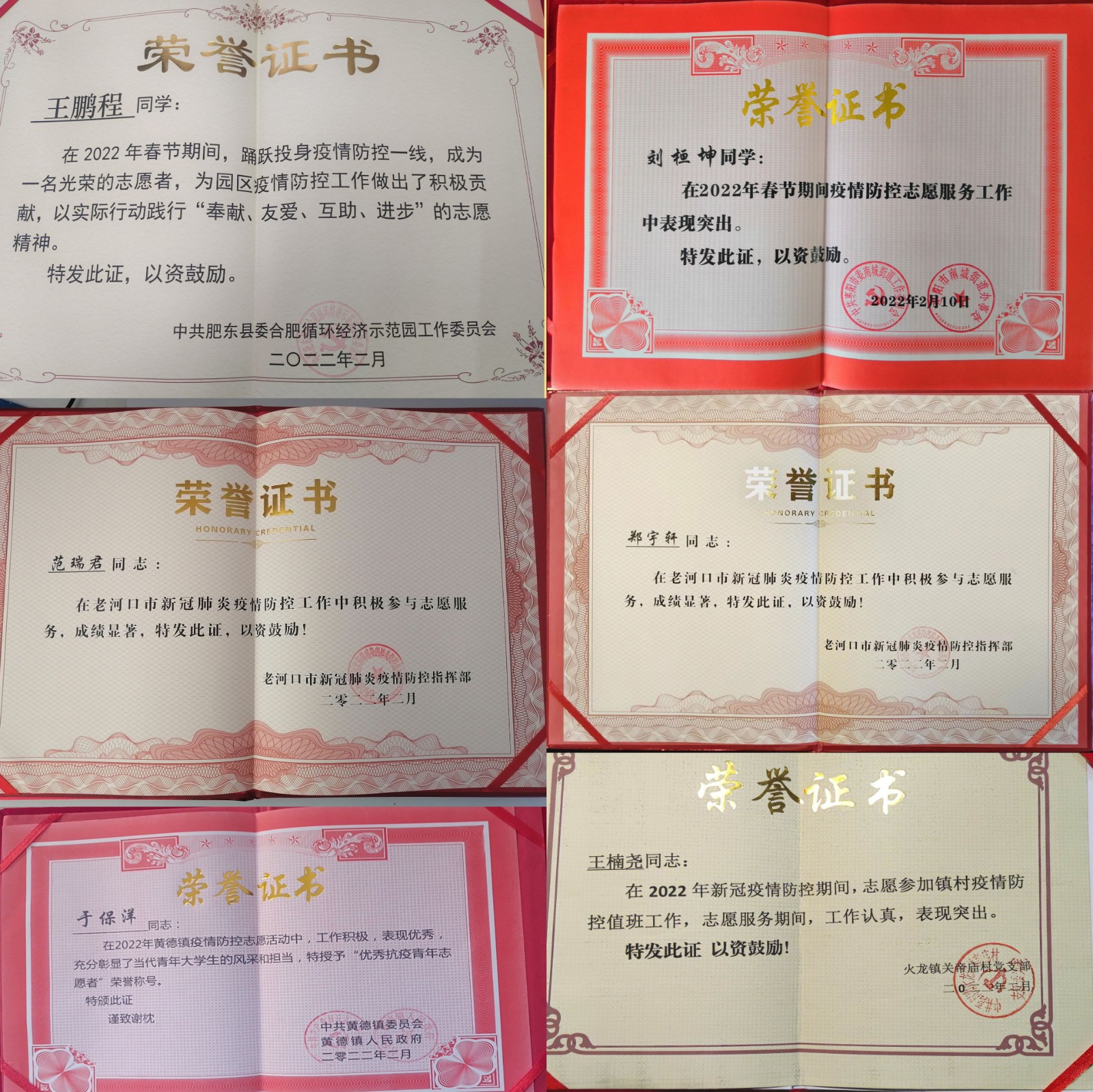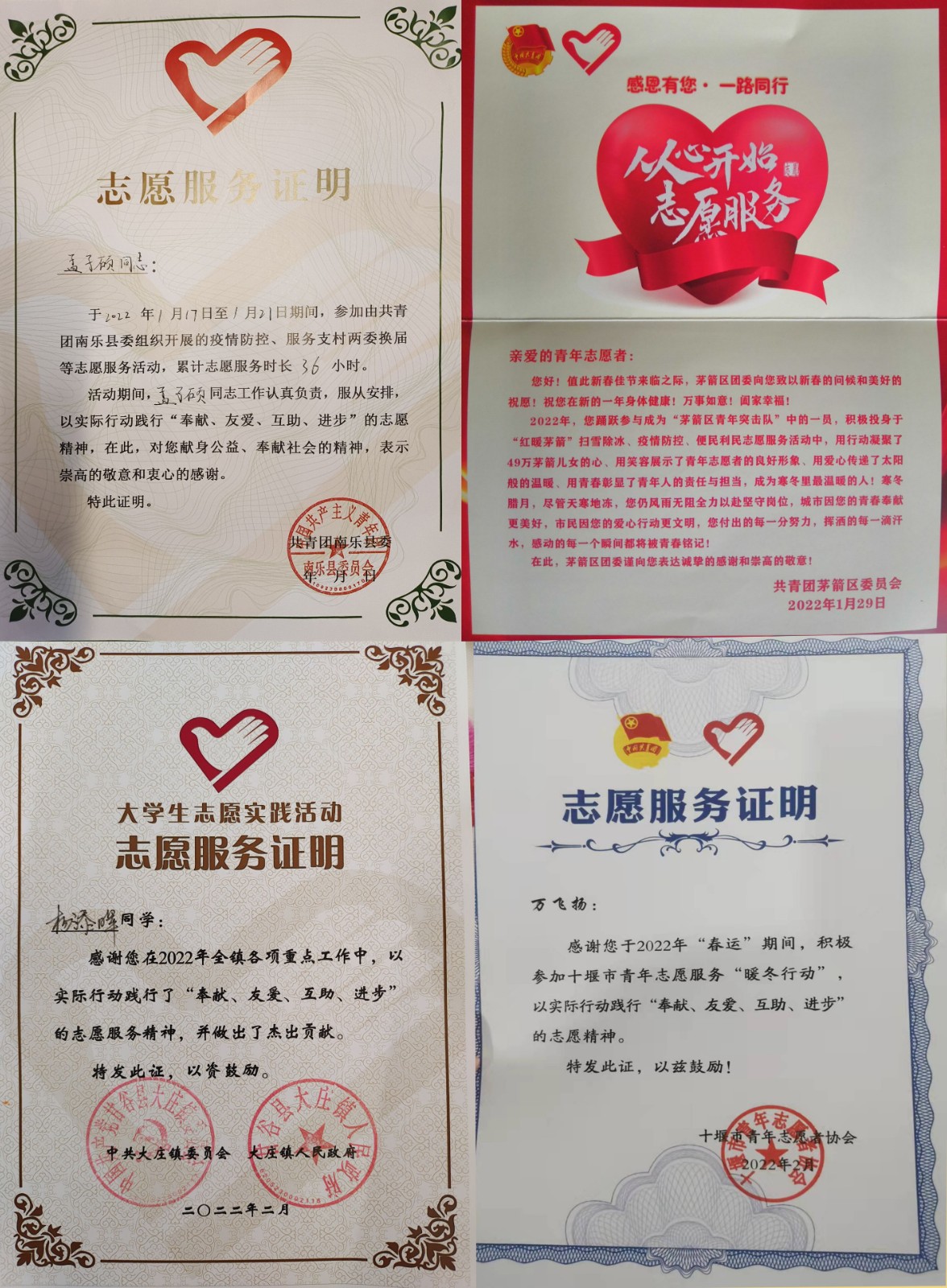 此外,十堰市青年志愿者协会、湖北老河口市防疫指挥中心等组织也对我院积极号召返乡大学生参与寒假抗疫志愿者活动表示感谢,肯定了正规博彩平台 平日对学生的悉心教导和思想引领工作成效。