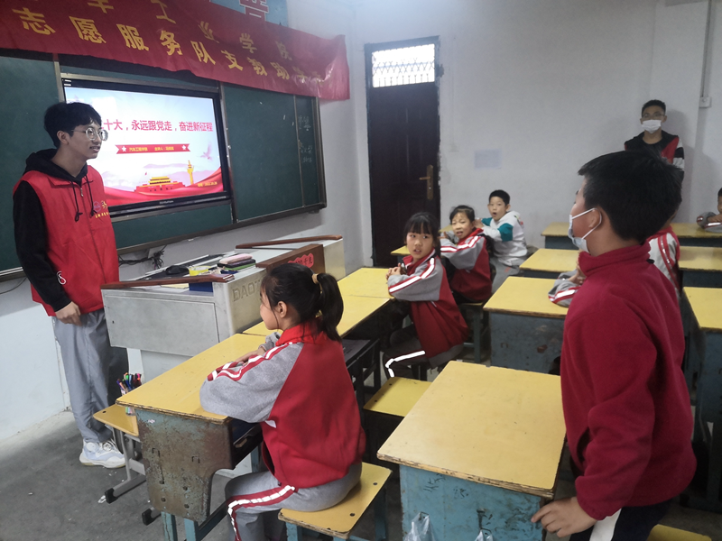 小火柴志愿服务队于10月28日下午前往李家湾小学开展“青春献礼二十大,红色宣讲进课堂”支教助学主题宣讲活动。