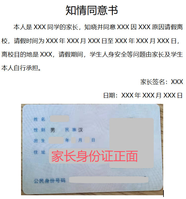 f、开完请假条需要交给因故无法正常上课或参加活动的相关负责老师,如果存在一张请假条覆盖多节课程的情况,出示请假条给第一节课任课老师查阅即可,自行保留至下一节请假课程备用。