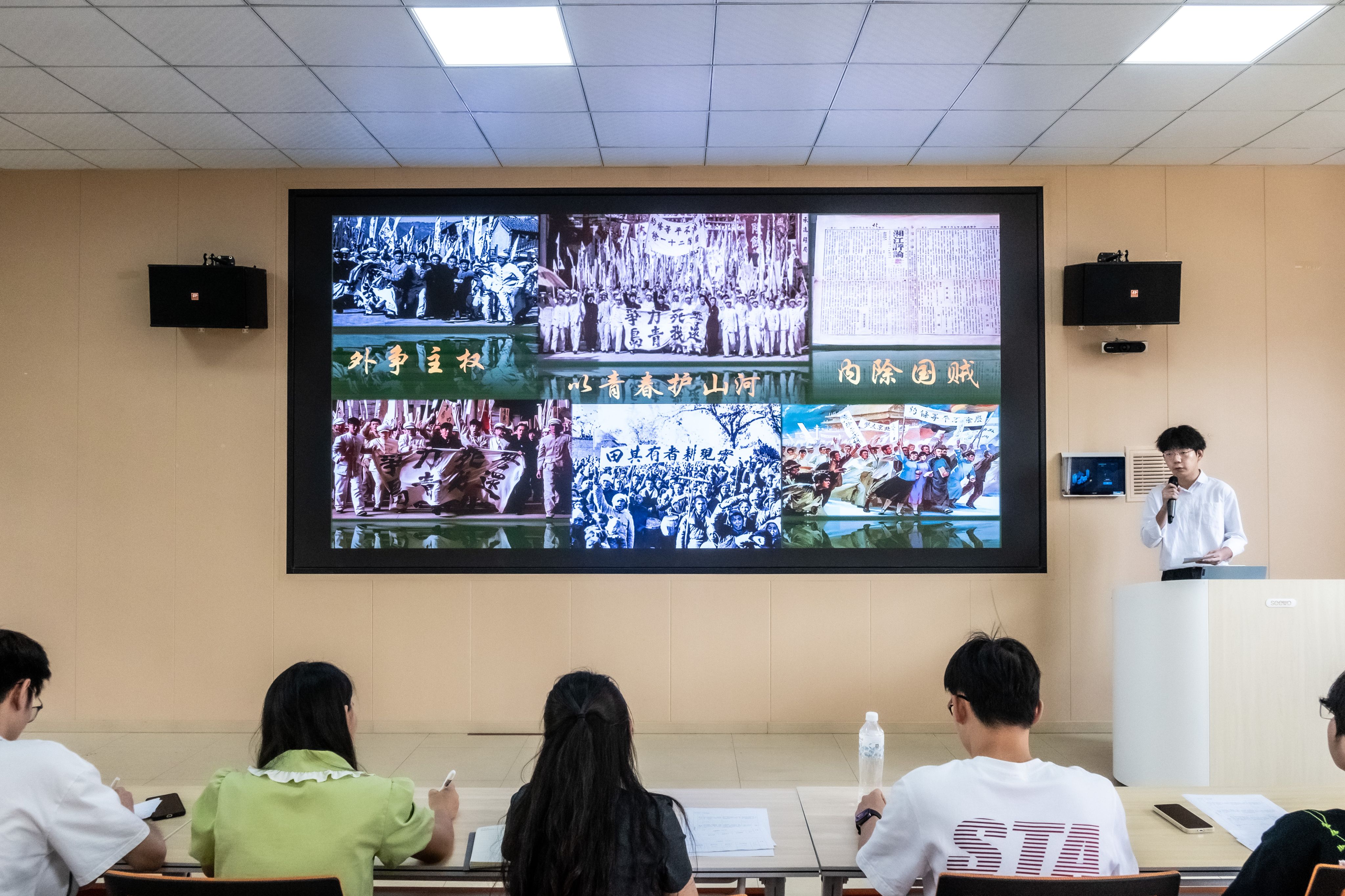 辅导员王裕、曹闪闪,往届优秀选手代表及学生观众共同参与。