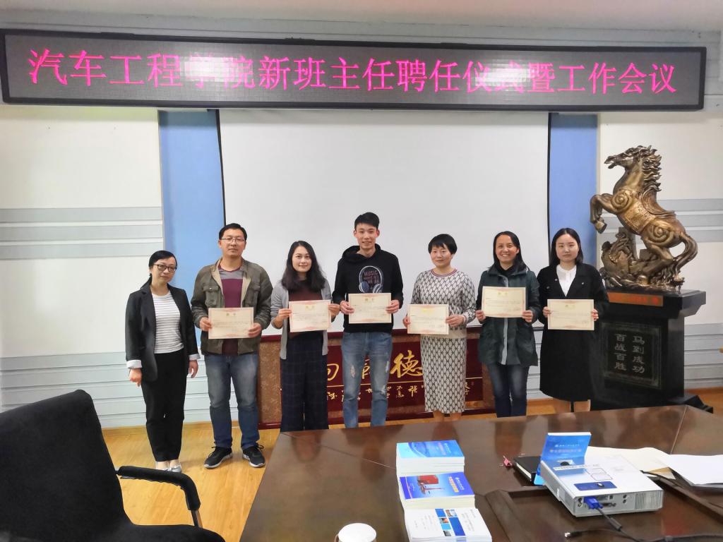 新一批班主任配备情况进行了说明和通告,冯樱为李楚琳、周红妮、邓召文、程婷婷等新一批班主任颁发了聘书,同时为之前已经担任班主任工作的同志补发了正式聘书。李秀峰带领大家进一步学习了《湖北汽车工业正规博彩平台