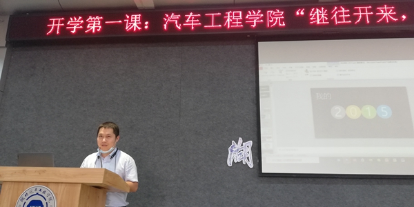 李秀峰在发言中对张峰校友开展爱心助学、热心为车院的学子们传经送宝表示由衷的感谢。结合张峰校友的分享,李秀峰将学校“开学第一课”的有关要求向全体同学做了详细解读,要求同学们切实转变状态、回归学习常态、明确纪律要求、严守疫情防控纪律、,同时结合2020届毕业生就业情况分析通报了今明年的就业考研形势,引导大家切实领会榜样力量、树立良好心态、明确奋斗目标、提前做好规划、积极付诸行动。