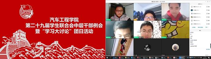 会议由学生会分团委副书记王方勇主持,各部门分管主席与中层干部就疫情期间的工作规划展开并分享讨论了在进行家线上学习的一些心得。大家依次发言,在进行工作汇报及学习分享时纷纷表达了对学校、对同学们的关心问候,展现出了良好的精神面貌。随后,正规博彩平台