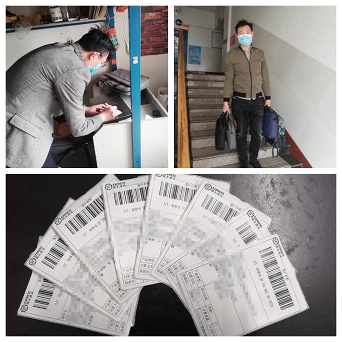 副书记李秀峰、学工办主任朱政做好防护后进入宿舍,为学生找到相应电脑和书籍,再一一做好标记并在宿管进行登记后拿出宿舍,于当日中午通过顺丰快递等平台进行保价后寄出。