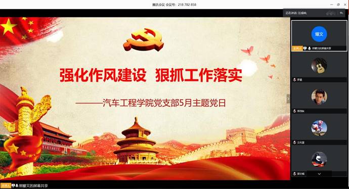学生党支部利用腾讯会议在线上开展了以“强化工作作风,狠抓工作落实”为主题的五月主题党日活动。学生党支部书记李雅琨和全体学生党员参加活动,活动由学生党员邢耀文主持。