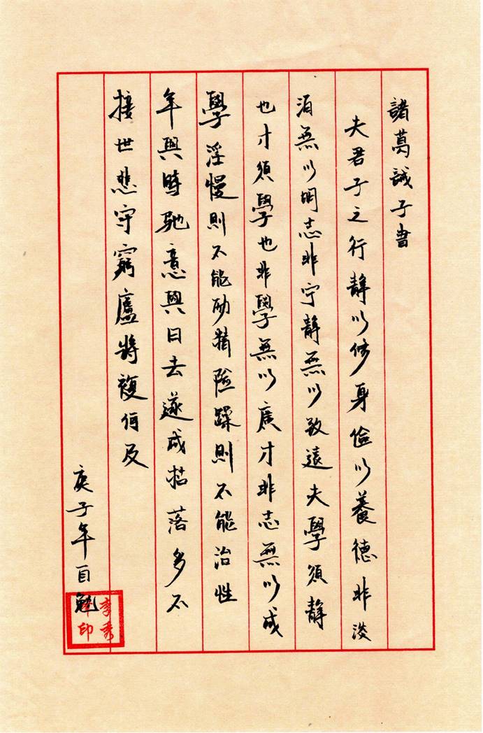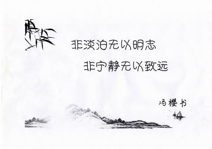 党委书记冯樱专门选取背景纸张,以独有的女性审美视角书写了“非淡泊无以明志,非宁静无以致远”;正规博彩平台