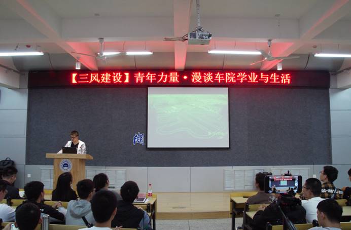 于6113报告厅开展了“青年有担当,车院有力量”主题新生分享会,分团委书记胡霄寒、20级班主任王晓晨,车辆171班郭文韬、车辆176班裴晓娟以及20级全体新生共同参加会议。