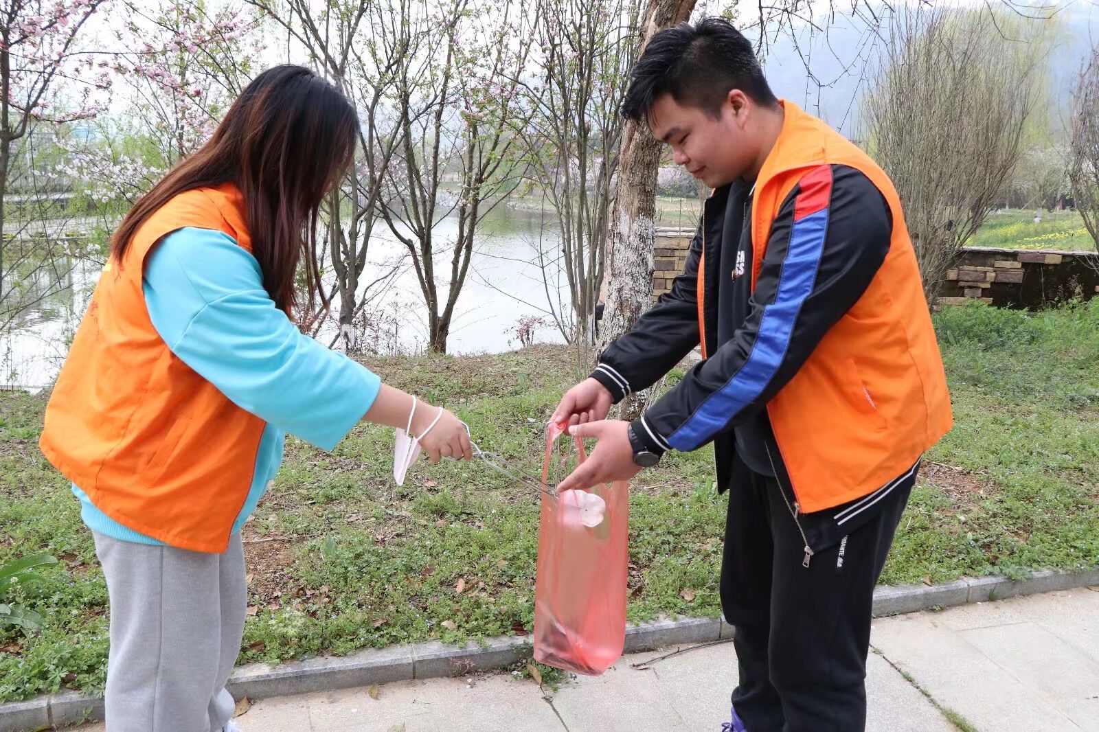 随后,学生干部践行雷锋精神,在园内作为公益志愿者打扫园区,帮忙清理园内的垃圾。大家拿起垃圾钳和垃圾袋,满腔热情的继续投入到环保清扫园区的活动中。俩俩结伴,一路上“搜寻”着垃圾,无论是塑料瓶、纸巾还是零食包装袋、烟头等等,把垃圾一一分类装好,统一放进了对应的垃圾桶。