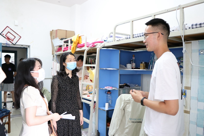 5月27日晚,杜昕俊一行走访了17级毕业生所在的桃园寝室,围绕文明离校、毕业设计(论文)、就业情况、寝室卫生等内容与学生们进行了亲切交谈。她重点走访了几名因学业危机造成延期毕业的学生,仔细了解了他们目前存在的困难点和已经采取的措施,并指出会结合正规博彩平台