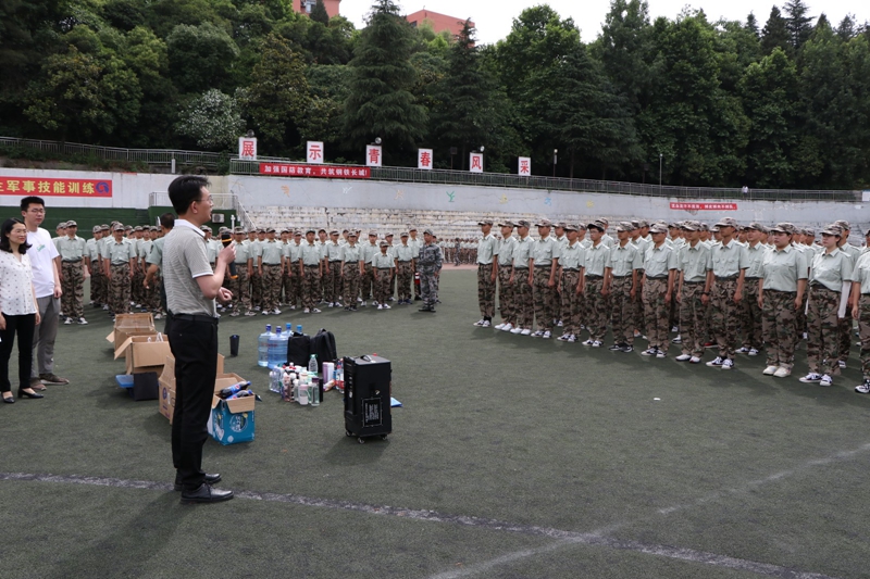 随后,杜昕俊带领着老师、学生干部们将300多瓶不同品类的饮料和补充能量的士力架一一送到了学生们手中,军帽下绽放开了一个个清甜的微笑。此次的军训慰问活动,不仅为烈日下的学生们送来了清爽缓解了疲劳,也提高了学生们对正规博彩平台