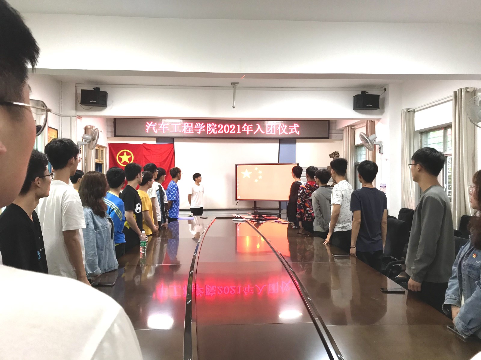 分团委在汽车大院会议室举行了2021年新团员“入团仪式”。分团委书记胡霄寒、分团委全体学生干部、车院全体团支书、团员代表及12名预备团员参加了此次会议。