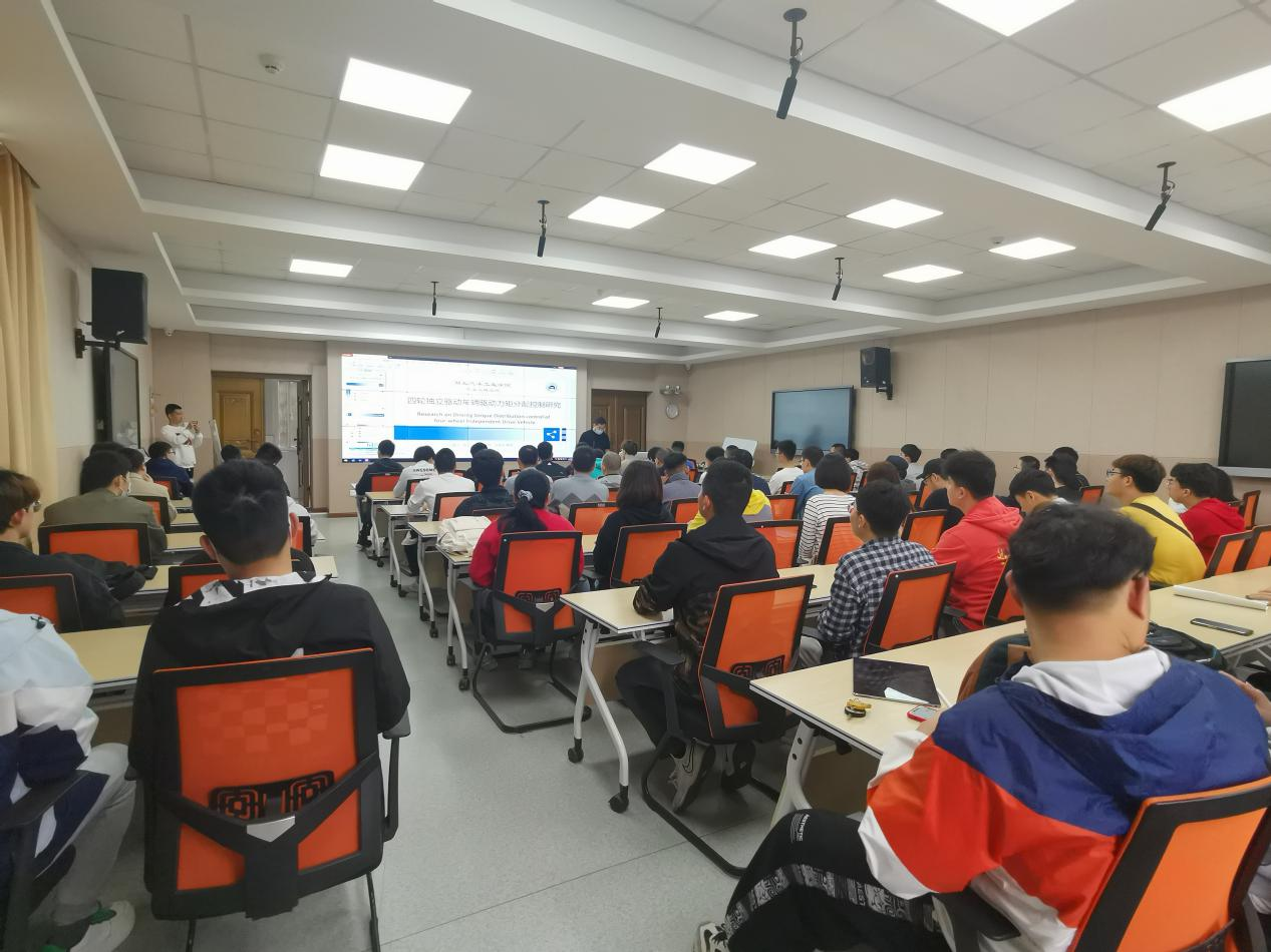 首先张羽为大家做了主题为四轮独立驱动车辆驱动力矩分配控制研究的报告,他介绍了电动汽车根据驱动形式分为集中式驱动和分布式驱动,并重点讲解了分布式驱动具有传动系统高效、底盘布置灵活、控制响应迅速更容易实现主动横摆控制的特点,同时说明了对于分布式驱动车辆转矩分配控制研究的必要性和研究意义。