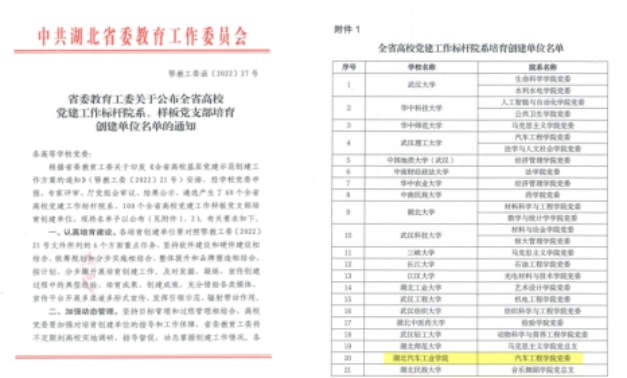 分党委又入选湖北省首批高校党建工作“标杆院系”立项建设单位,
