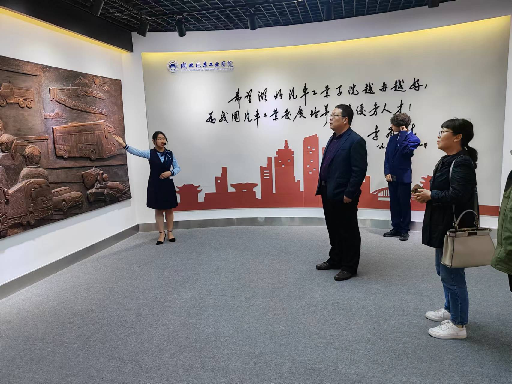 的相关实验室。在校史馆,王文龙主任一行了解到学校的发展历史和办学特色,特别在对接汽车产业链设置专业和深化产教融合、协同育人方面开展的创新工作印象深刻,在随后的座谈交流中对此赞不绝口。随后,一行人在校史馆讲解人员的带领下进行全面参观,对学校自1972年创办以来51年的发展历程和辉煌成就,以及精神内涵有了全面、清晰的认识。