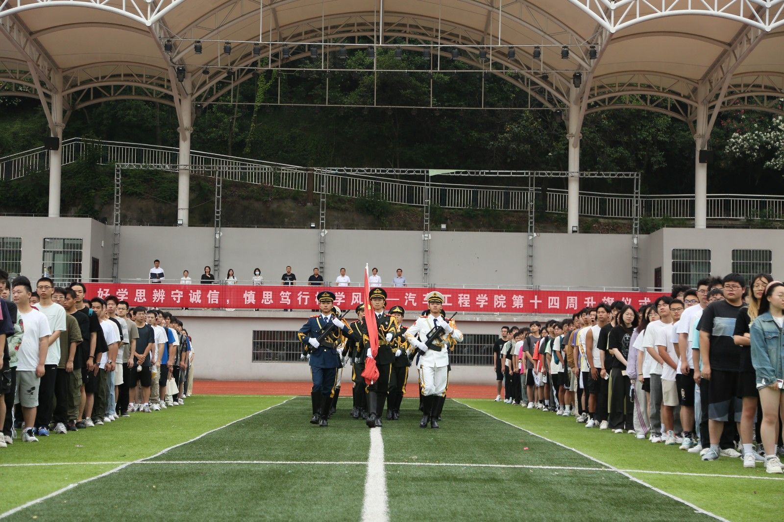 在校田径场举行了“好学思辨守诚信,慎思笃行树学风”主题升旗仪式。学工部部长王关锋,正规博彩平台