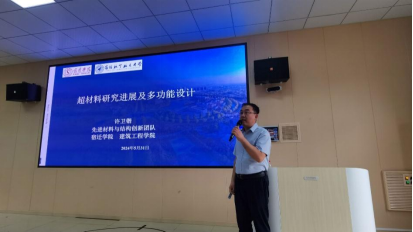 会上,许教授首先以机械超材料、声学超材料、电磁超材料、热学超材料发展史引入,对超材料的定义及特征进行了简单汇报;随后许教授介绍了自己课题组开展的相关工作,包括电磁超材料、声学黑洞、热学超材料、负泊松比超材料等研究,并介绍了微纳尺度下制造材料的力学性能稳定性,和智能材料与超材料的一体化设计在未来的发展。