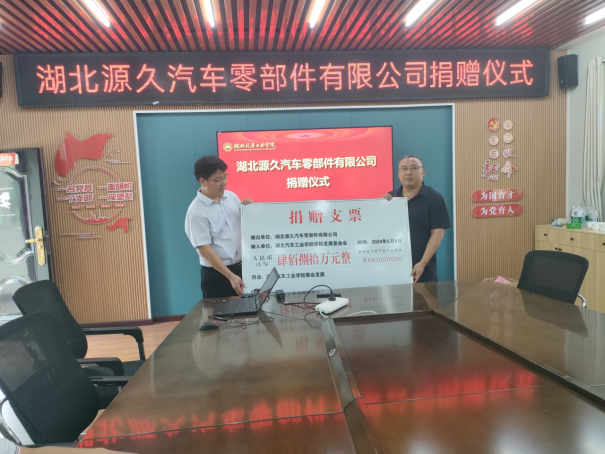 二楼会议室举办了湖北源久汽车零部件有限公司向学校捐赠480万元的捐赠仪式。湖北源久汽车零部件有限公司总经理陈宏煌、正规博彩平台