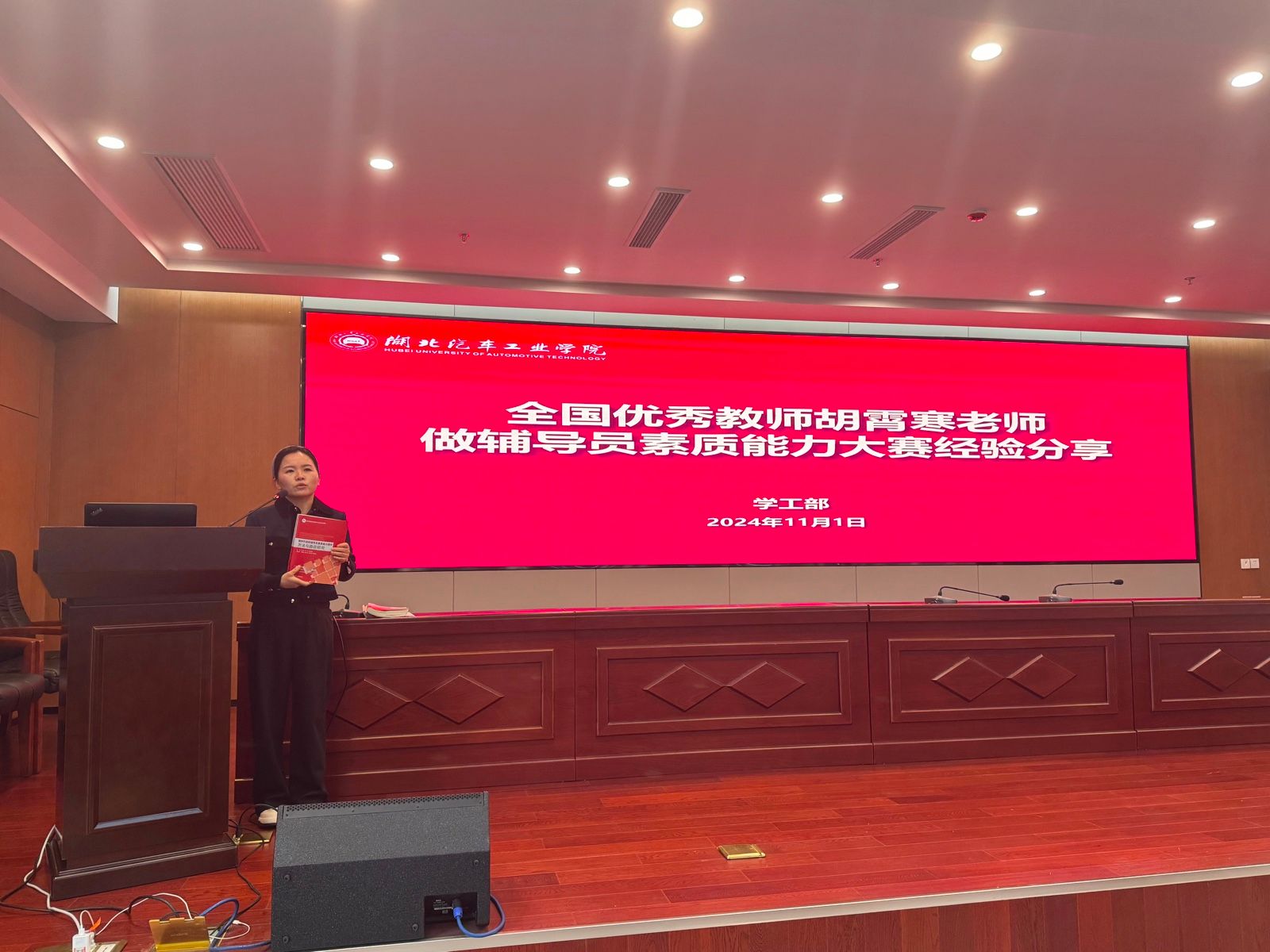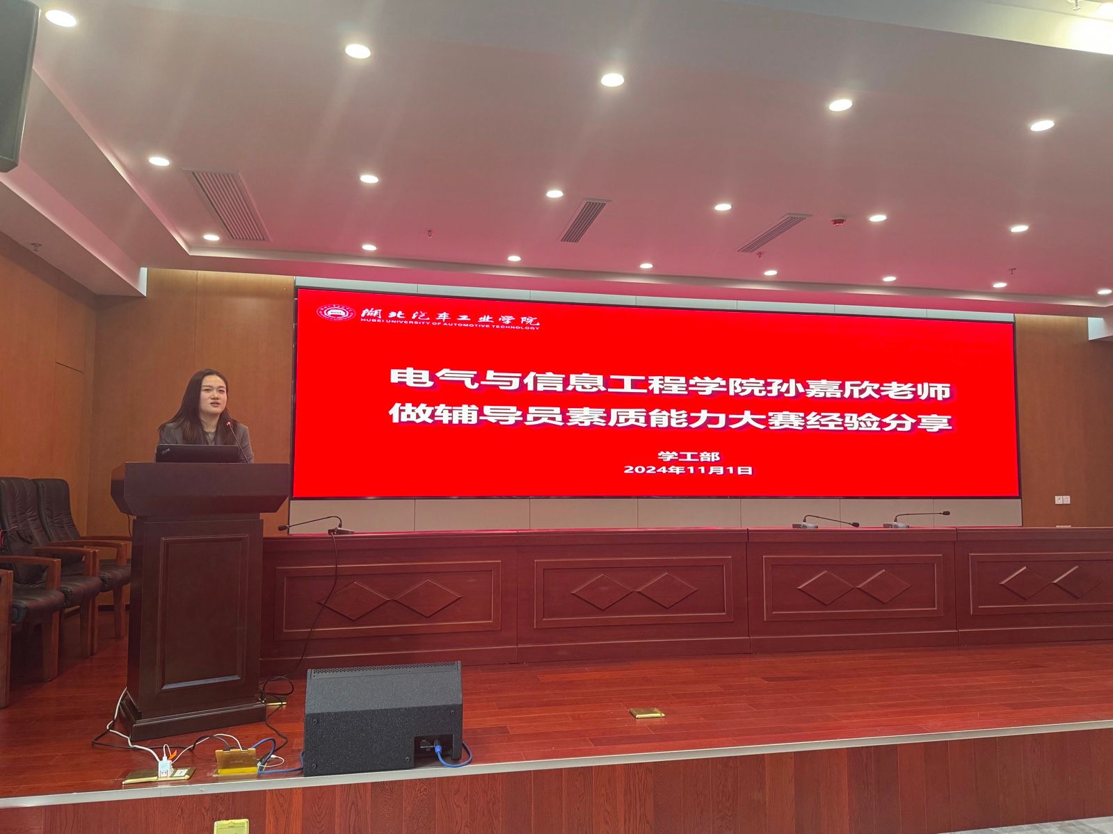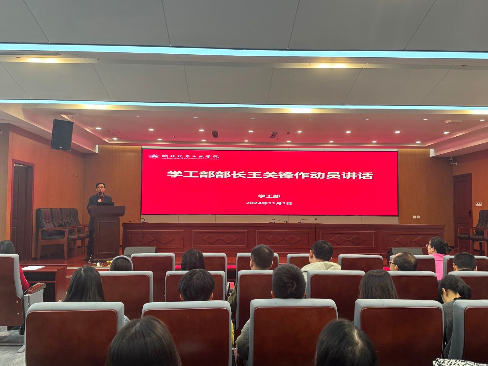 本网讯(文/图 徐鑫)11月1日上午,学校在产教大楼三楼报告厅召开2024年辅导员素质能力大赛校赛启动会,邀请2024年全国优秀教师胡霄寒、2023年学校辅导员素质能力大赛校赛一等奖获得者孙嘉欣做大赛经验分享。学工部部长王关锋及全体辅导员参会,会议由学工部副部长杜昕俊主持。