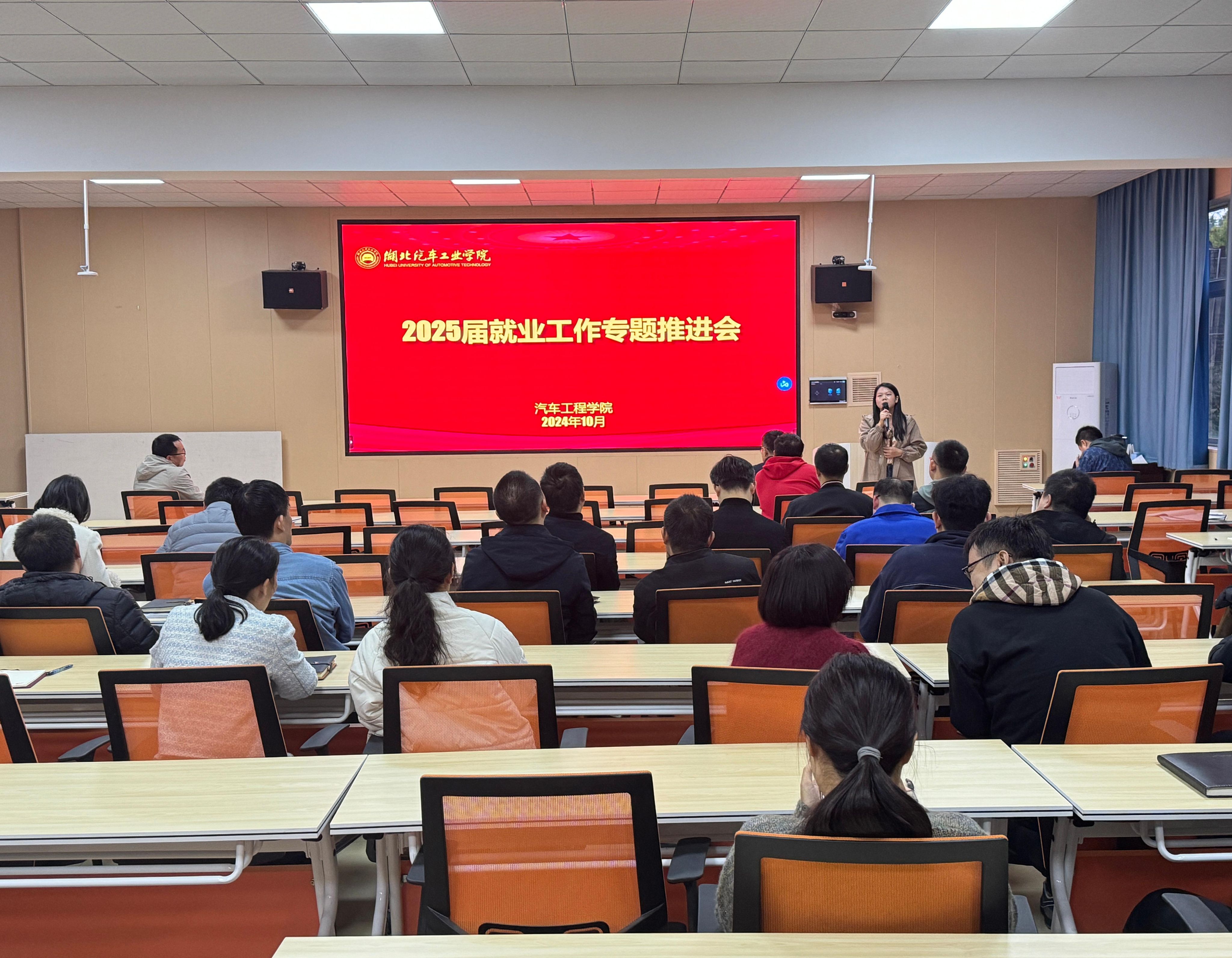 会上,周彬通报了我院2024届毕业生就业去向落实情况和2025届毕业生最新就业情况,结合当前就业工作面临的趋势与挑战,从实习实训、校园招聘、升学指导、就业指导、岗位开拓等方面进行了工作安排。
