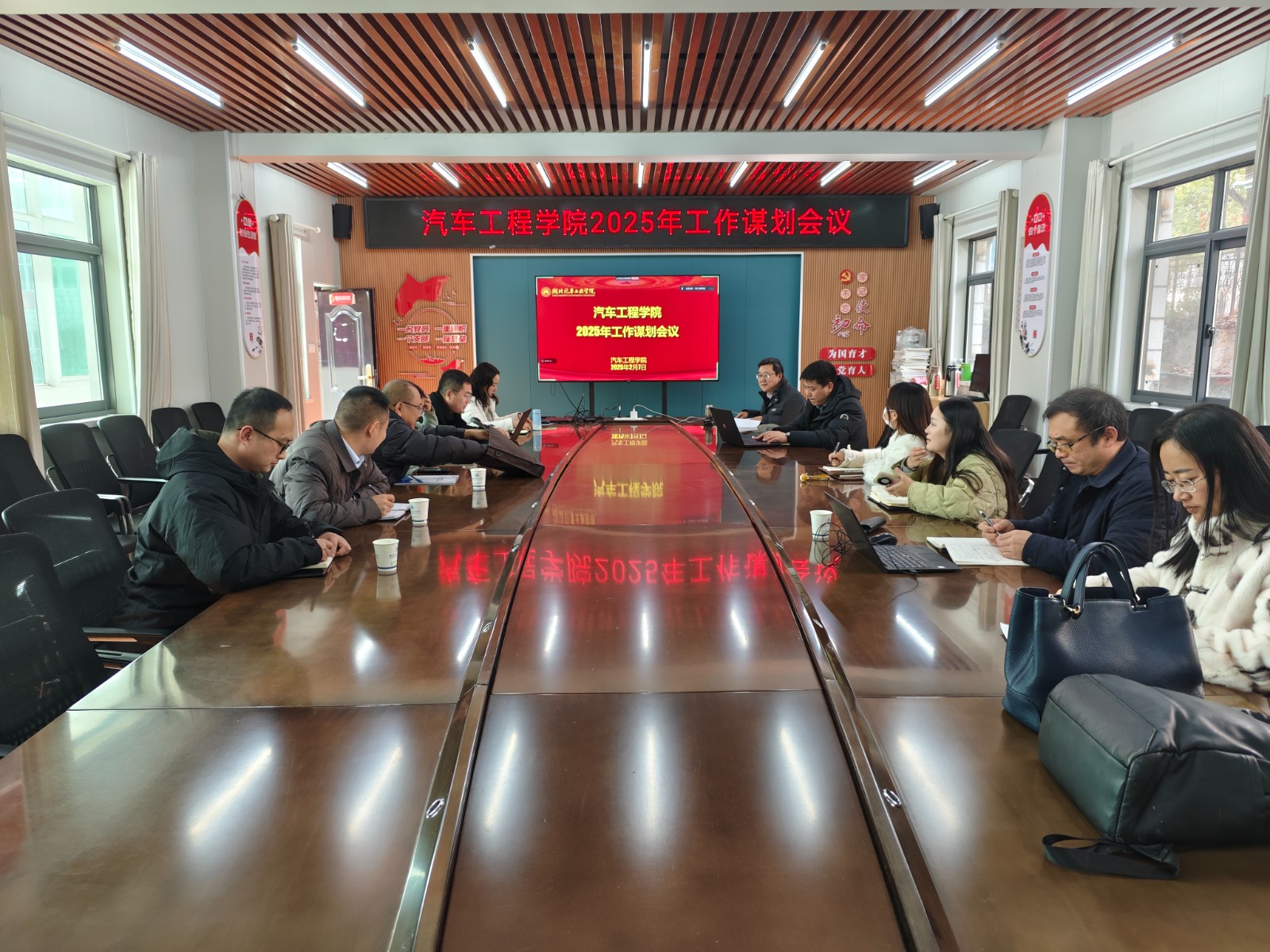 领导就分管的工作汇报了2025年的计划与重点工作;院长助理与认证和审核评估办公室主任汇报了协管工作;三办主任及分团委书记汇报本职工作与计划;系主任围绕就业、人才引进、经费、企业对接、教研项目及国家基金等汇报;专业负责人聚焦大车辆人才培养方案按知识图谱修订作报告。