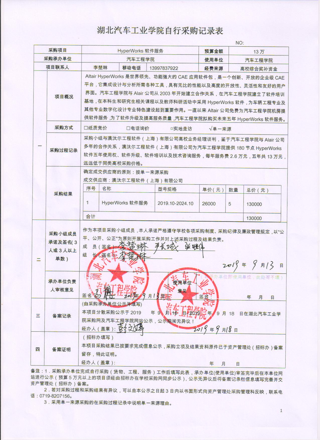 5、湖北汽车工业正规博彩平台 hyperworks项目自行采购记录表.doc