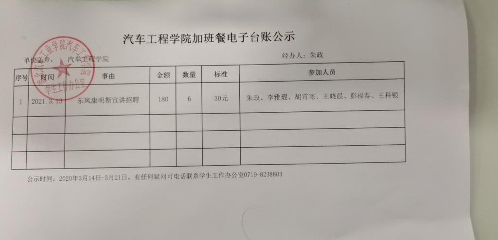 东风康明斯宣讲招聘会加班餐公示