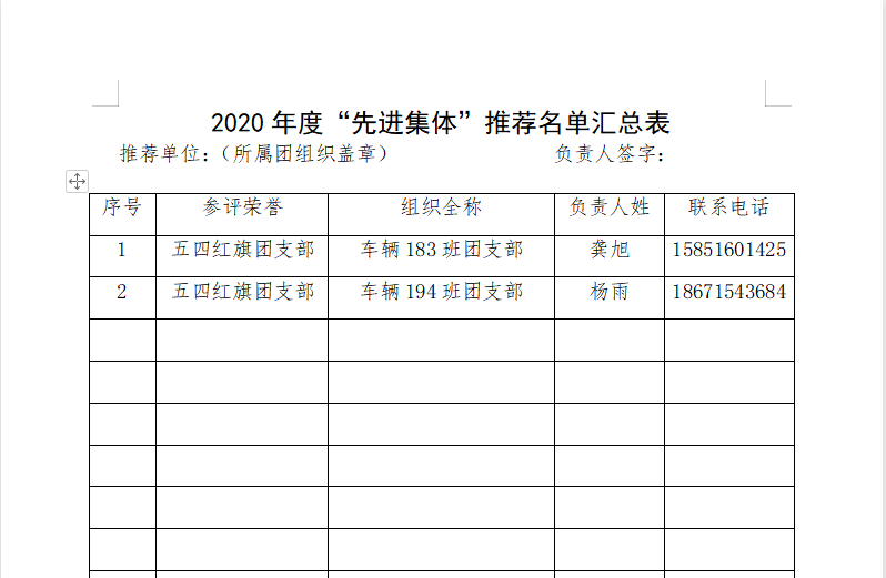 2020年度“先进集体”推荐名单汇总表-正规博彩平台 .doc