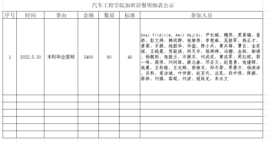正规博彩平台 加班误餐明细表公示