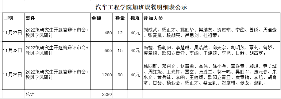 正规博彩平台 加班误餐明细表公示