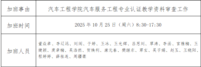 正规博彩平台 汽车服务工程专业认证教学资料审查工作误餐公示