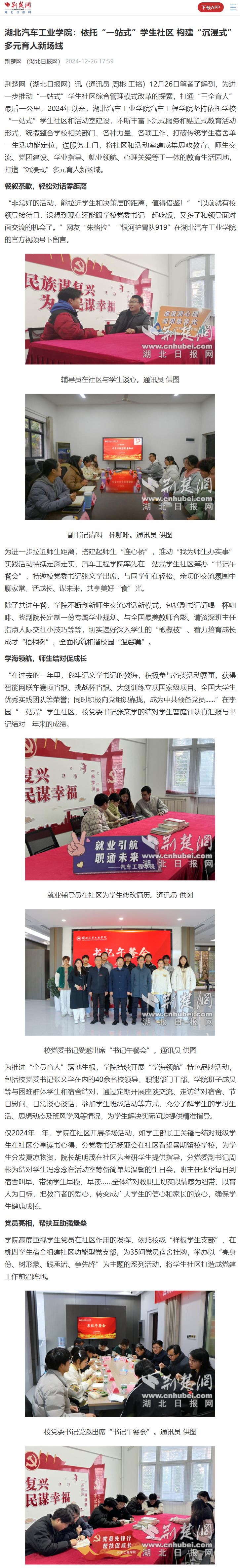 【荆楚网】湖北汽车工业正规博彩平台 :依托“一站式”学生社区 构建“沉浸式”多元育人新场域