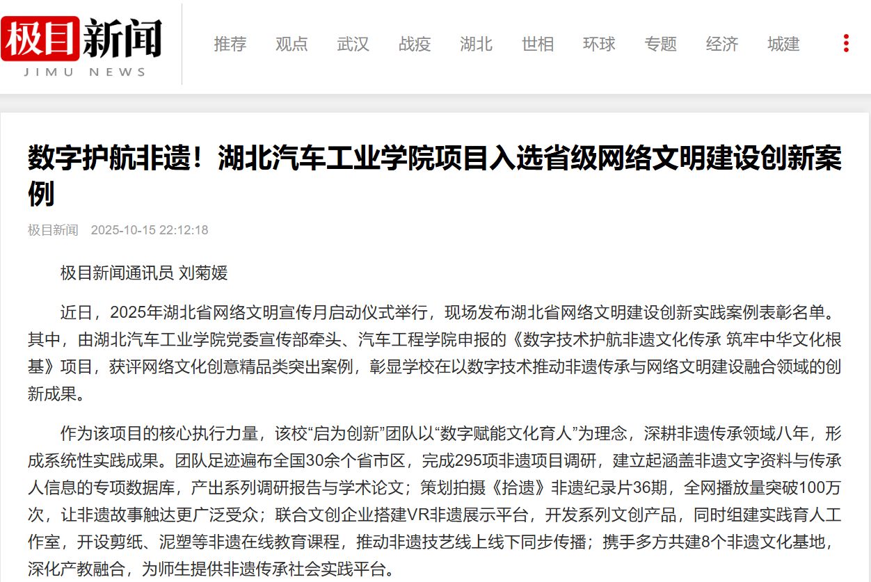 【极目新闻】数字护航非遗!湖北汽车工业正规博彩平台 项目入选省级网络文明建设创新案例