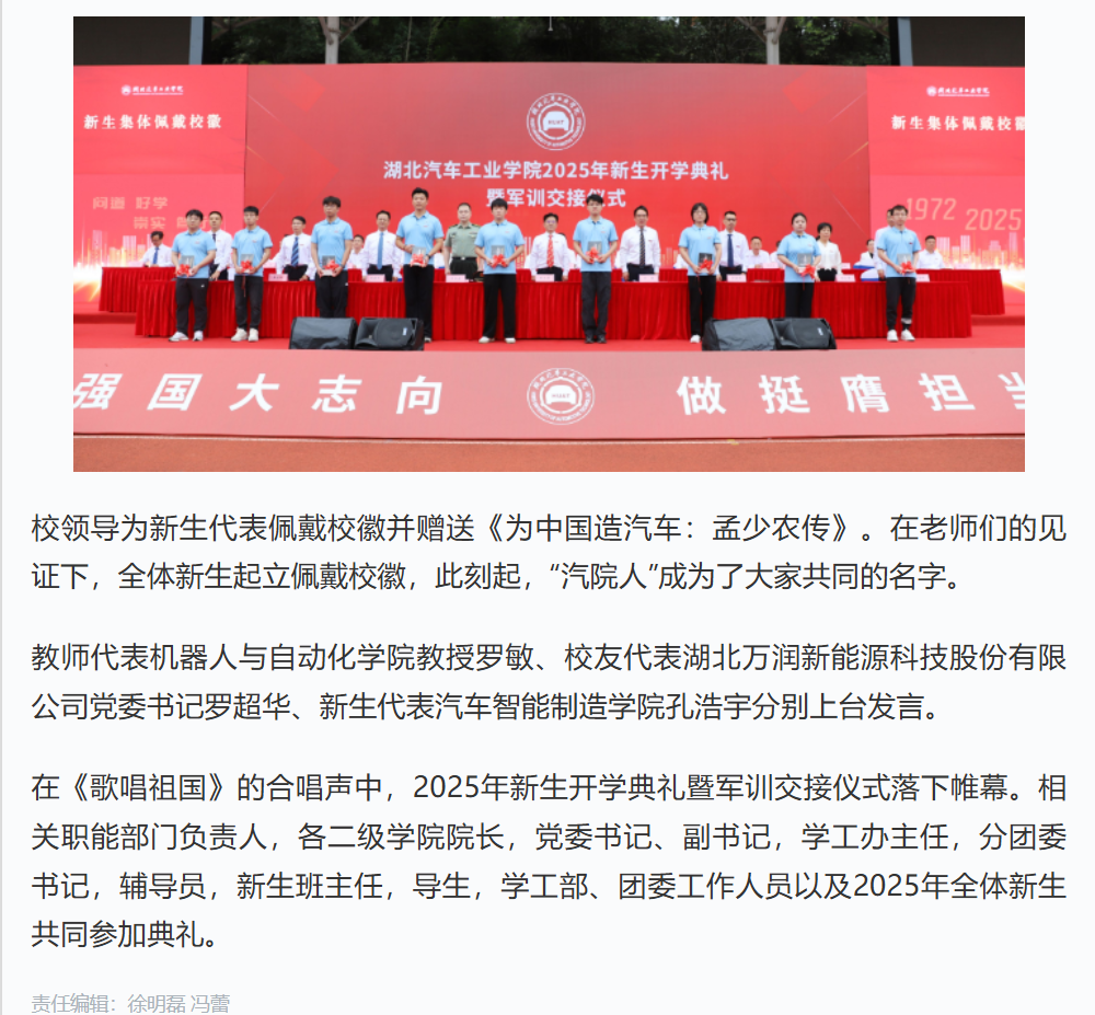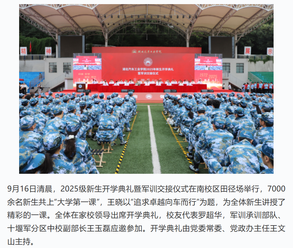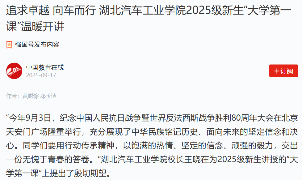 【中国教育在线学习强国号】追求卓越 向车而行 湖北汽车工业正规博彩平台 2025级新生“大学第一课”温暖开讲