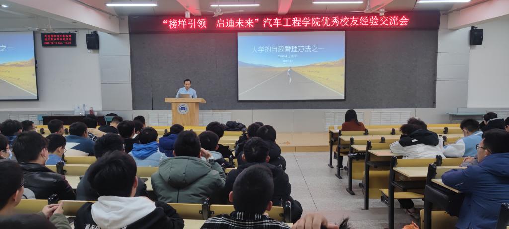 王维平2004年入读汽院,2008年作为第一人参加学校与德国乌尔姆应用科技大学的本科双学位交换项目;本科毕业后继续在乌尔姆应用科技大学攻读研究生;其目前在奥迪中国企业管理有限公司从事电子电气规划和诊断相关的工作。王维平首先结合自己在大学时的困惑向大家提出了中肯的建议;随后,王维平结合自身的大学成长经历,与大家分享了“PDCA自我管理方法”与职业生涯规划的感悟。“同学们要立志成为兼具宽口径知识储备与专业技能过硬的T型人才,在大学四年里着重培养锻炼自身的汇报表达能力、项目管理能力、前瞻性思考能力等素质。”