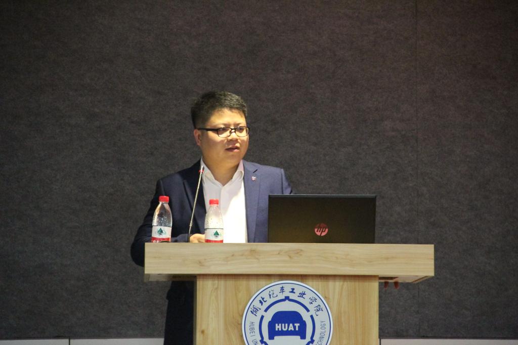 宣讲会。金龙豪华车技术部副部长杨光勉一行四人,车院学工办主任朱政、分团委书记胡霄寒以及17级全体学生参加此次宣讲会。