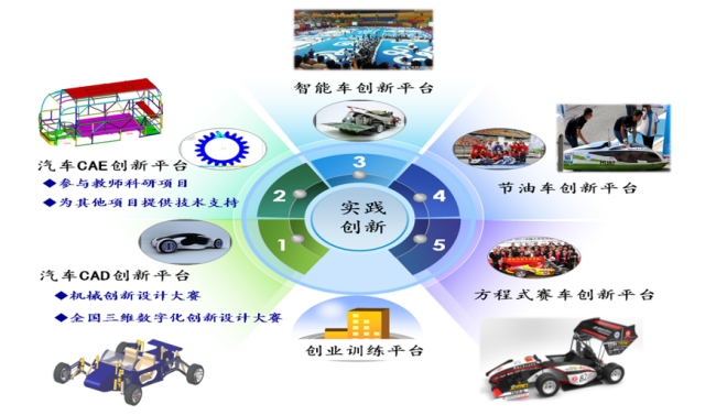 为学生搭建了五大汽车特色学生科技创新平台:大学生方程式赛车、智能车、节油车、CAD、CAE创新平台,使学生的科技创新意识和技能得到全面锻炼和提升。近年来,该专业学生取得省级以上学科竞赛共计奖项100余项,公开发表创新论文和申请国家专利20余项,每年有10余名学生获得省级优秀学士学位论文。其中,学生曾在中国大学生方程式汽车大赛中3次夺冠、连续8年位居前五,2022年再次斩获燃油车全国亚军和电动车全国季军荣誉。同时,在全国大学生“恩智浦”智能车大赛、全国3D创新设计大赛中多次获得全国一、二等奖。