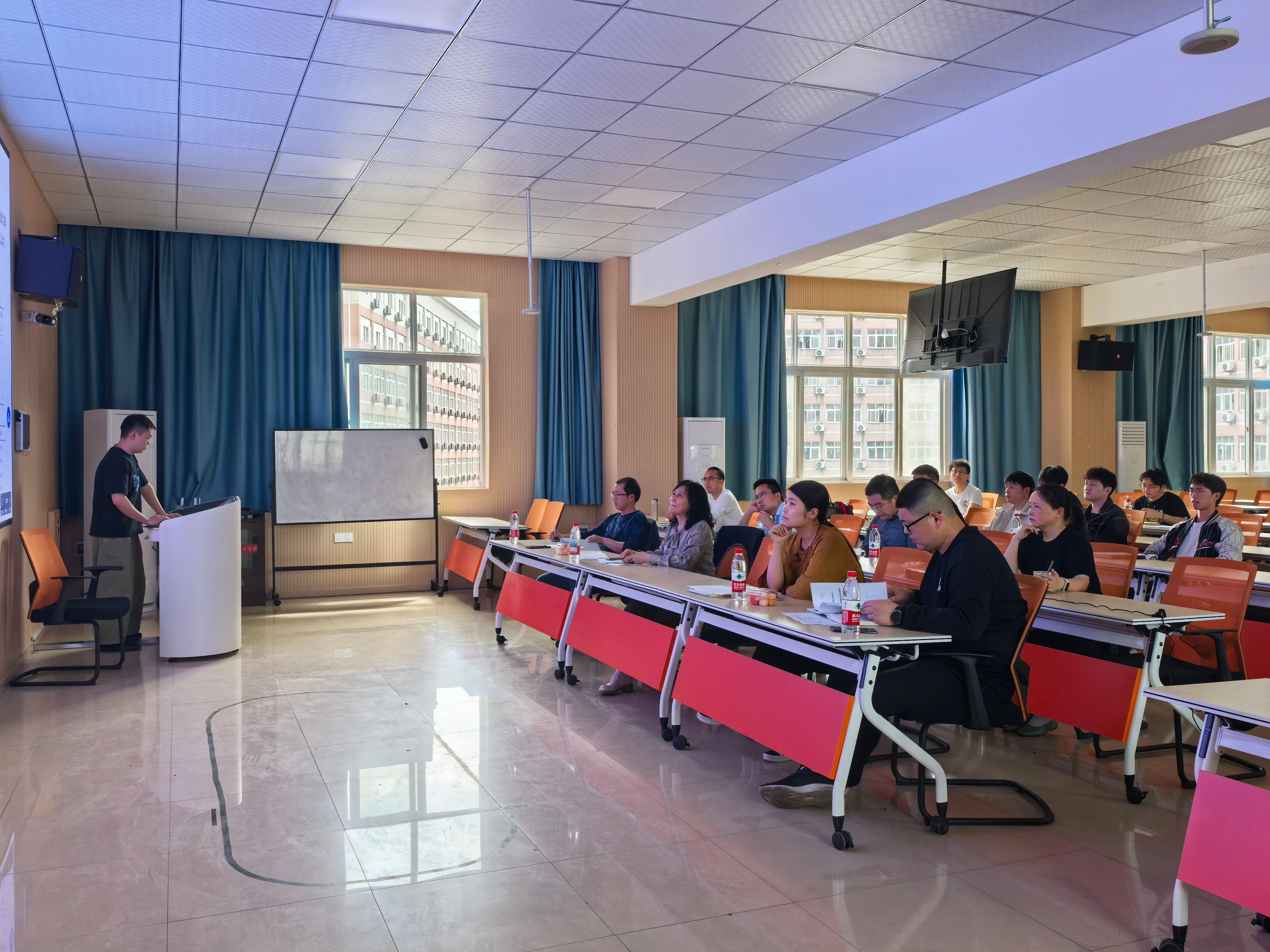 评审组的老师们秉持着高度负责的治学态度和严谨规范的学术精神,在认真聆听学生们的汇报后,老师们从论文的语言表达、用词准确性、格式规范、排版美观等基础层面,到选题的创新性、研究方法的科学性、实验内容的合理性等核心方面,进行了全方位的评议和提问。他们不仅精准指出了论文中存在的问题与不足,还为每位学生提供了详细且具有针对性的修改建议。此外,针对一些关键问题和前沿研究方向,师生们还展开了热烈的讨论,碰撞出思维的火花。