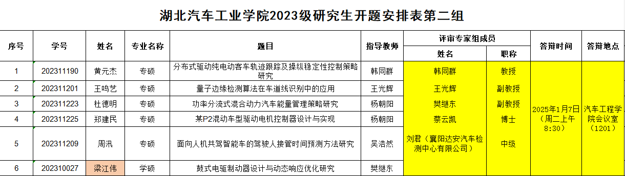 2023级研究生注意,以下是开题答辩第二次安排表,请各位同学悉知: