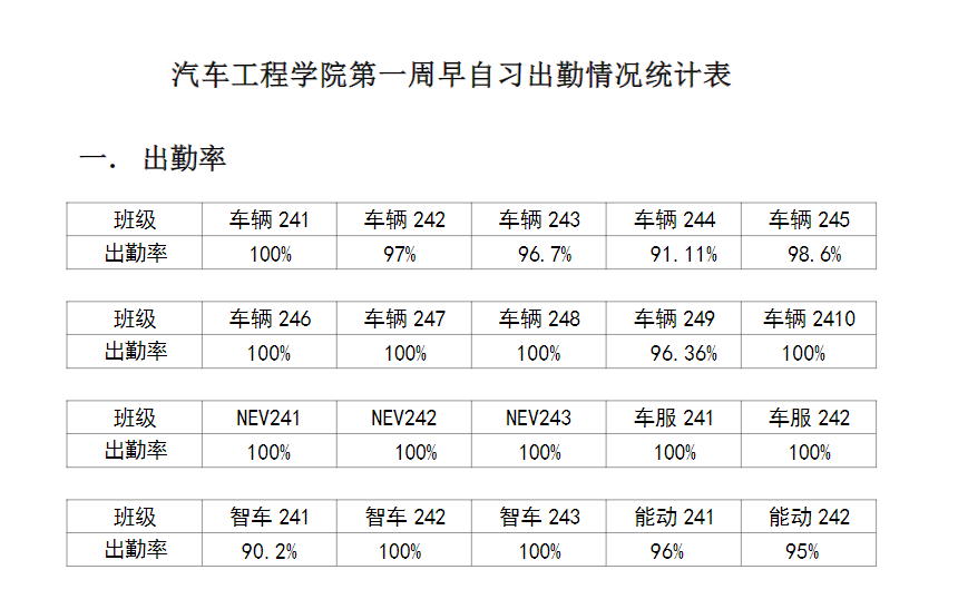 【督学正风】正规博彩平台 2024-2025学年第二学期第一周早自习出勤情况