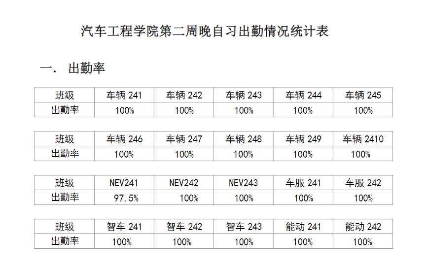 【督学正风】正规博彩平台 2024-2025学年第二学期第二周早自习出勤情况