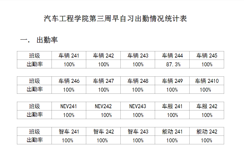 【督学正风】正规博彩平台 2024-2025学年第二学期第三周早自习出勤情况