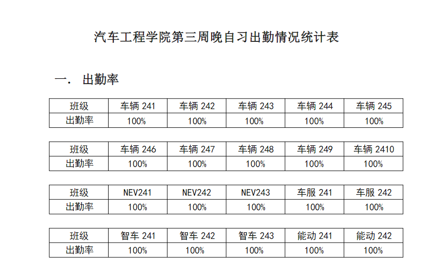 【督学正风】正规博彩平台 2024-2025学年第二学期第三周晚自习出勤情况