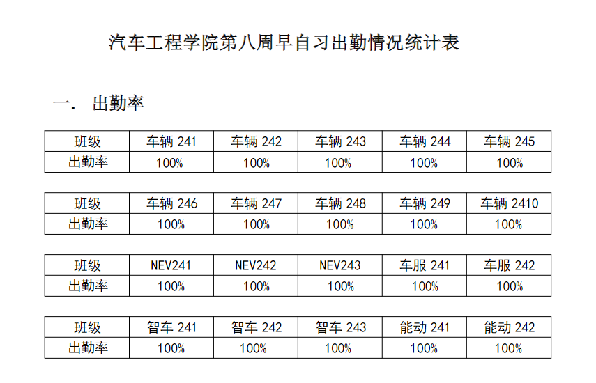 【督学正风】正规博彩平台 2024-2025学年第二学期第八周早自习出勤情况