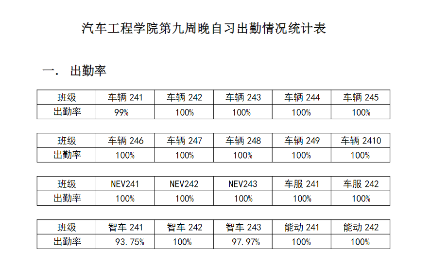【督学正风】正规博彩平台 2024-2025学年第二学期第九周晚自习出勤情况