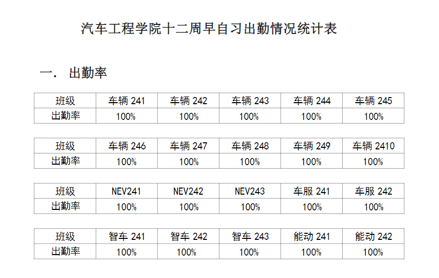 【督学正风】正规博彩平台 2024-2025学年第二学期第十二周早自习出勤情况