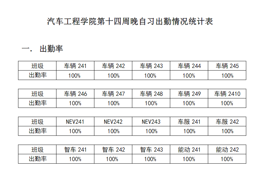 【督学正风】正规博彩平台 2024-2025学年第二学期第十四周晚自习出勤情况