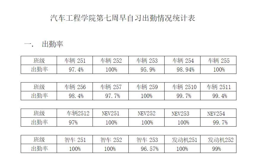 【督学正风】正规博彩平台 2025-2026学年第一学期第七周早自习出勤情况